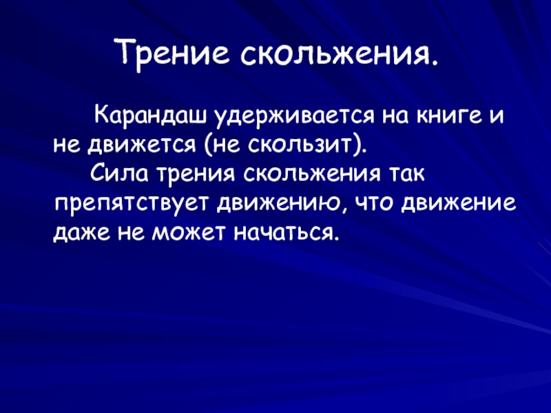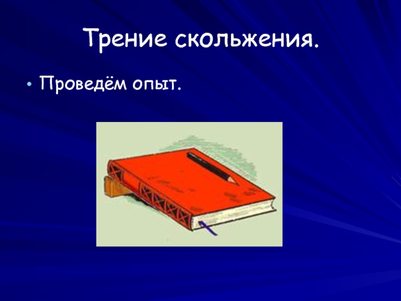Трение скольжения.     Карандаш удерживается на книге и не движется (не скользит).