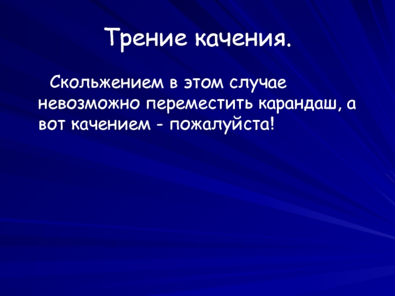 Трение качения.   Скольжением в этом случае невозможно переместить карандаш, а вот качением - пожалуйста!