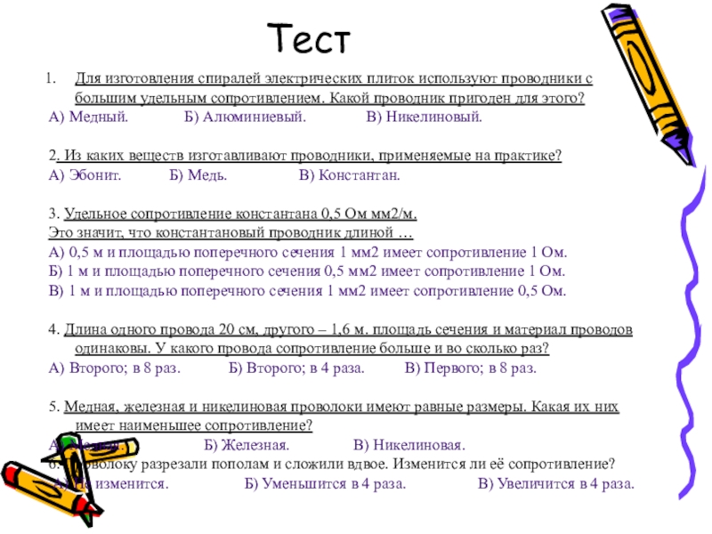 Диэлектрики: фарфор, нихром.
