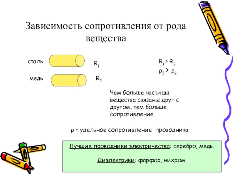 Чем больше частицы вещества связаны друг с другом, тем больше сопротивление