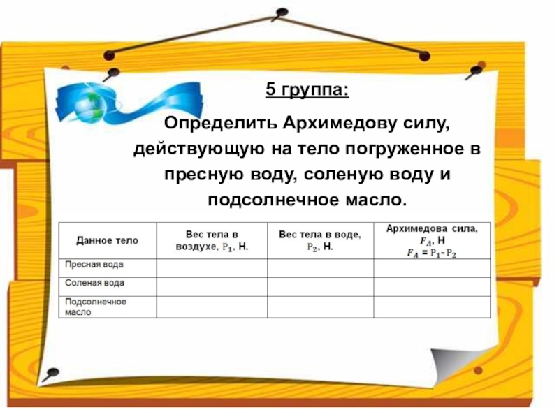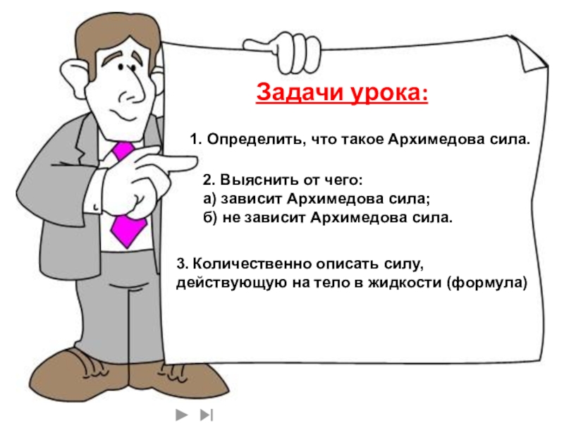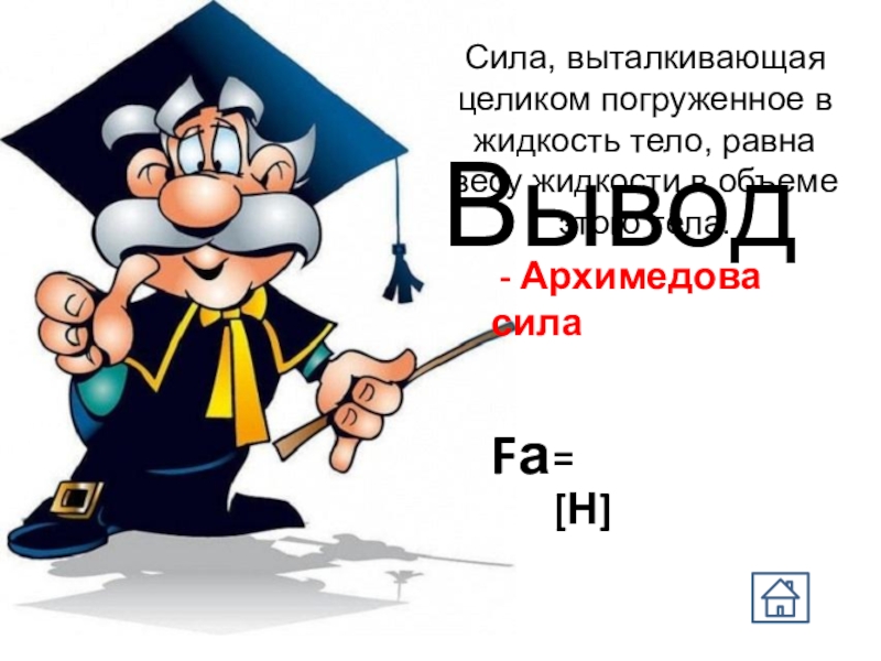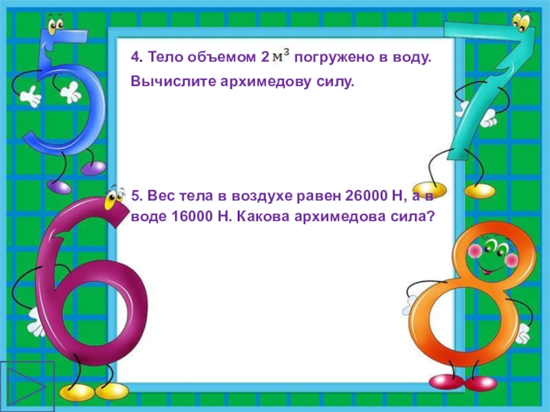 3. Количественно описать силу, действующую на тело в жидкости (формула)