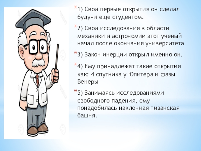 5) Занимаясь исследованиями свободного падения, ему понадобилась наклонная пизанская башня.