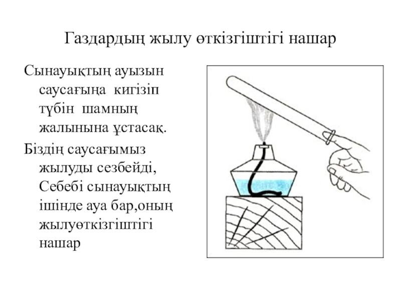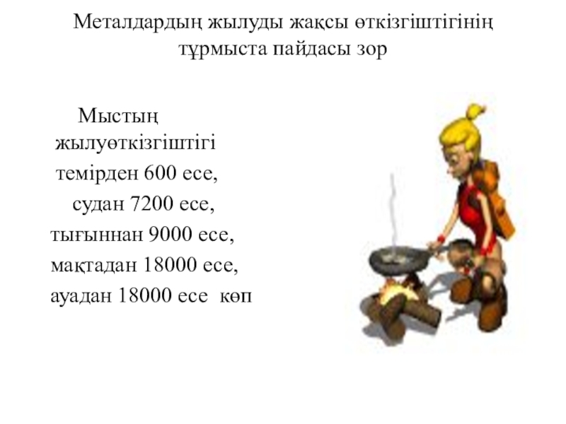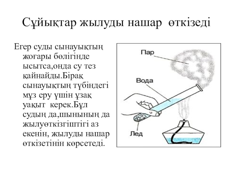 Әр түрлі материалдардың алуан түрлі жылуөткізгішін тәжірибелер арқылы байқауға болады.