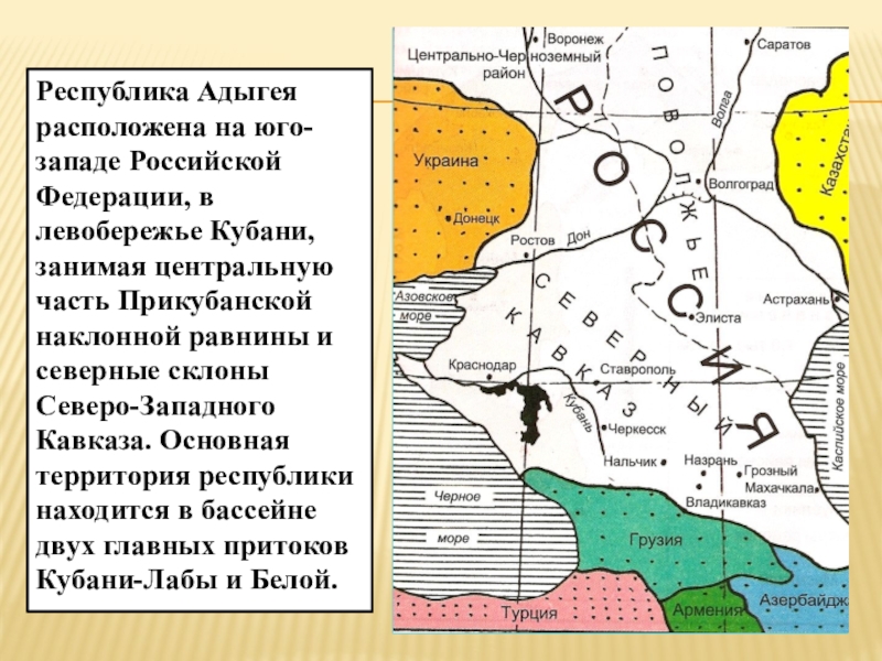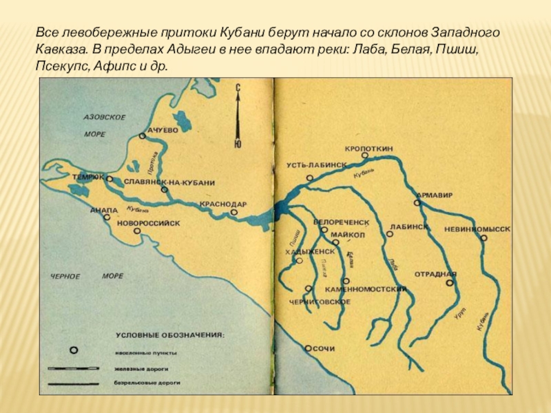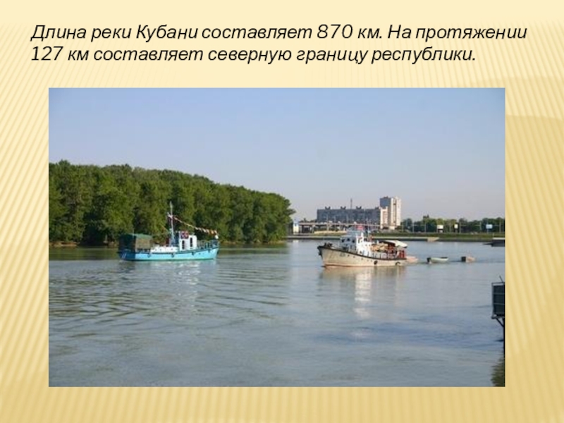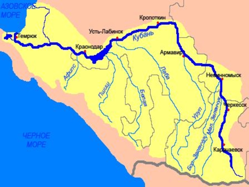 Большими реками считают реки длиной свыше 500 км. К ним в Адыгеи относится одна - р. Кубань.