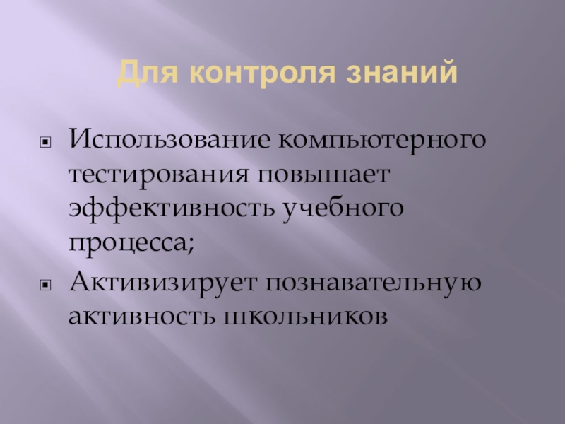 Использование компьютерного тестирования повышает эффективность учебного процесса;