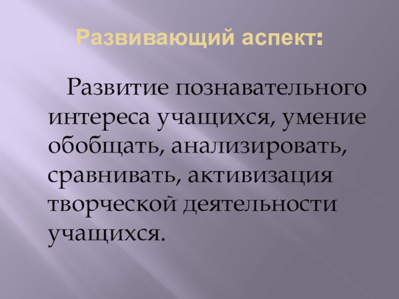 Развитие познавательного интереса учащихся, умение обобщать, анализировать,