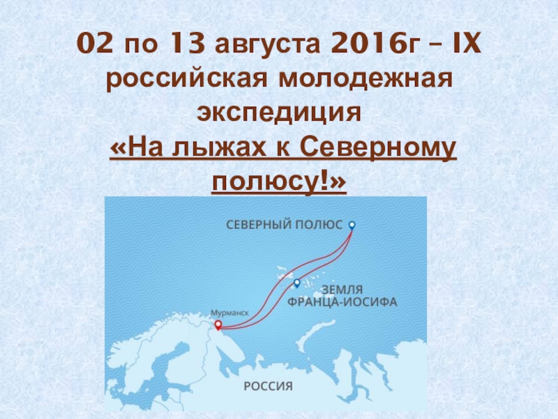 Слайд 1602 по 13 августа 2016г – IX российская молодежная экспедиция «На