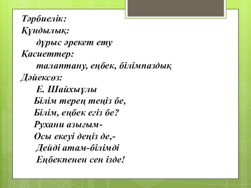 Слайд 1186. Білімің көп болса сені құрметтейді, байлығың көп болса қызғанады, білімнің