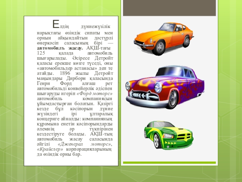 Слайд 100 Елдің дүниежүзілік нарықтағы өзіндік сипаты мен орнын айқындайтын дәстүрлі өнеркәсіп саласының
