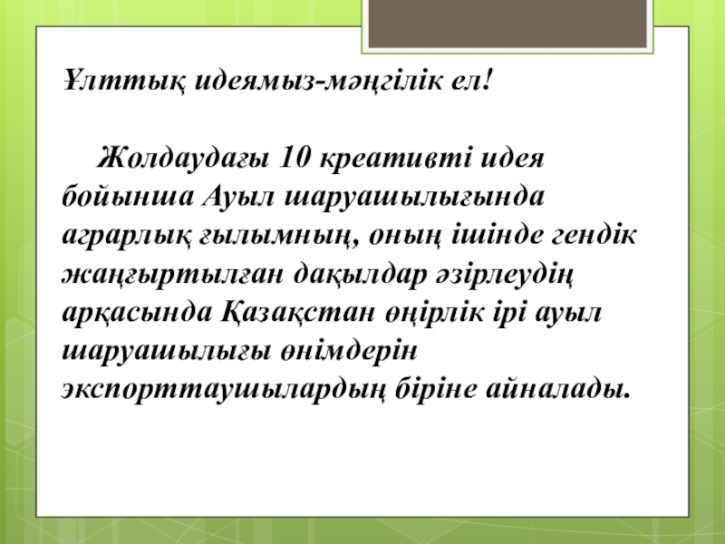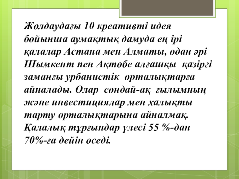 Слайд 97Жолдаудағы 10 креативті идея бойынша аумақтық дамуда ең ірі қалалар Астана