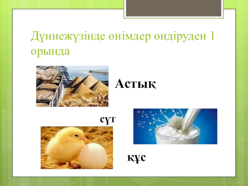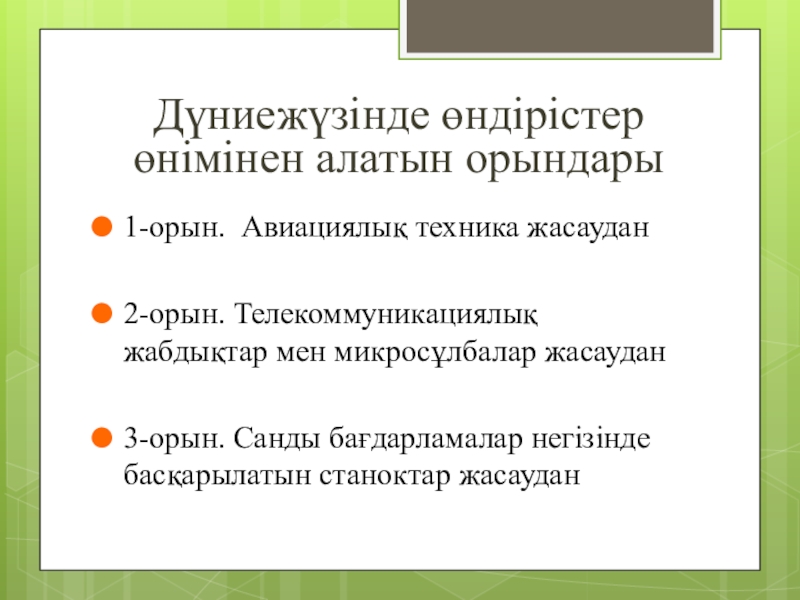 Слайд 16Дүниежүзінде өндірістер өнімінен алатын орындары