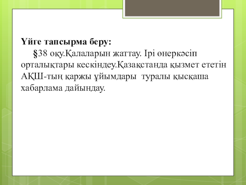 §38 оқу.Қалаларын жаттау. Ірі өнеркәсіп орталықтары кескіндеу.Қазақстанда қызмет ететін