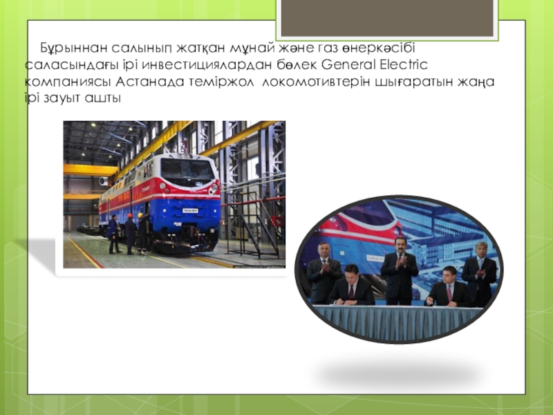 саласындағы ірі инвестициялардан бөлек General Electric компаниясы Астанада теміржол локомотивтерін шығаратын жаңа ірі зауыт ашты