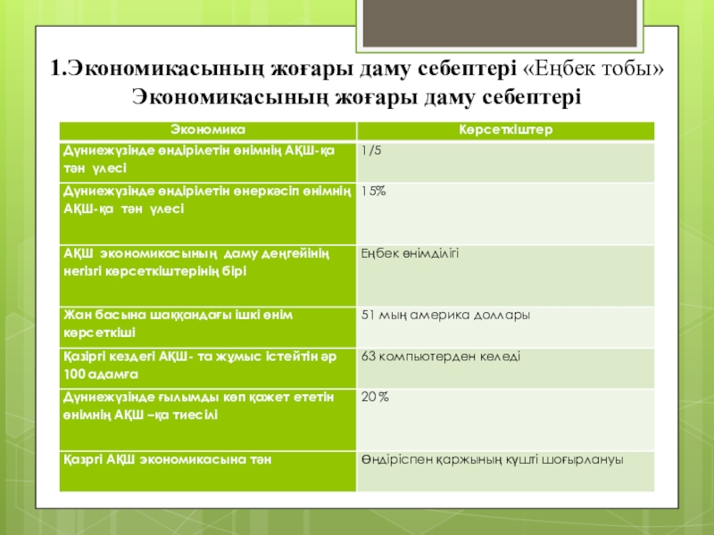 Слайд 931.Экономикасының жоғары даму себептері «Еңбек тобы»