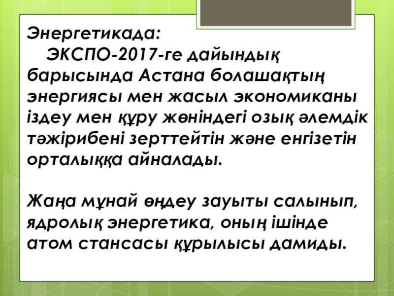 АЭС үшін өз отынымызды өндіруді дамыту.