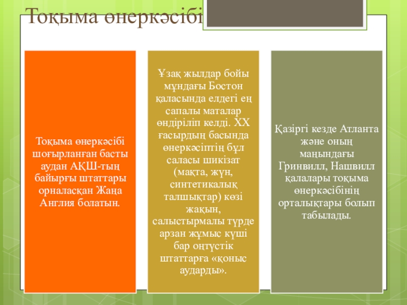 Слайд 27Тоқыма өнеркәсібінің орталықтары
