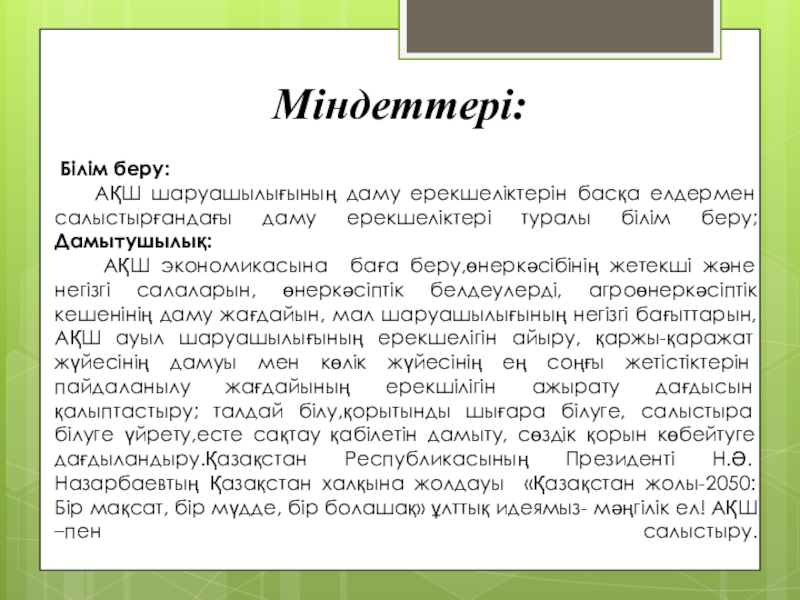 Сабақтың мақсаты: АҚШ шаруашылығын оқып үйрену.