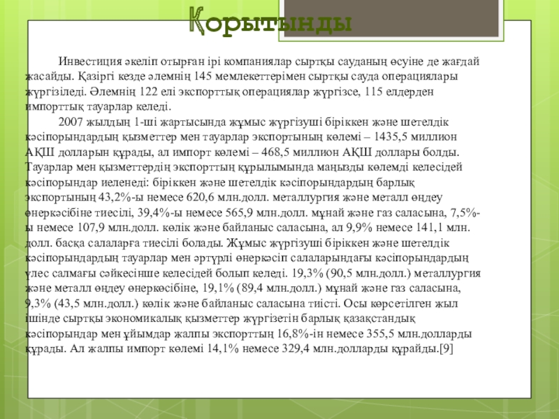 Қазақстанға инвестиция ғана әкеліп қойған жоқ, сонымен бірге оның қатысуымен