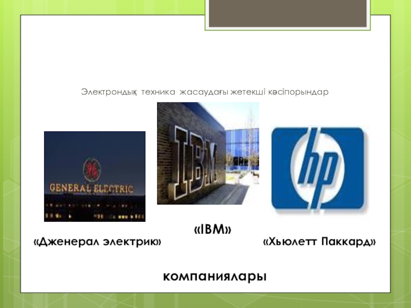«ІВМ», «Дженерал электрик», «Хьюлетт Паккард» компаниялары.