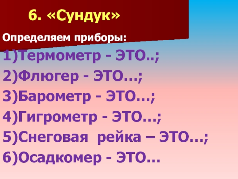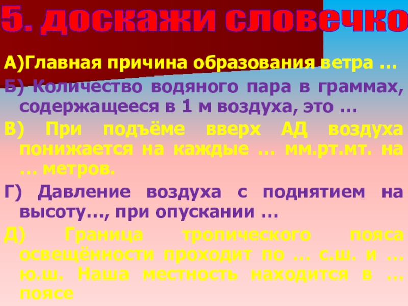 5. Сила, с которой воздух давит на земную поверхность, на все находящиеся на ней предметы