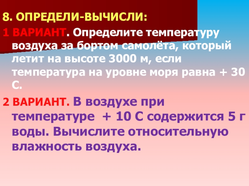 1 ВАРИАНТ. Определите температуру воздуха за бортом самолёта, который летит