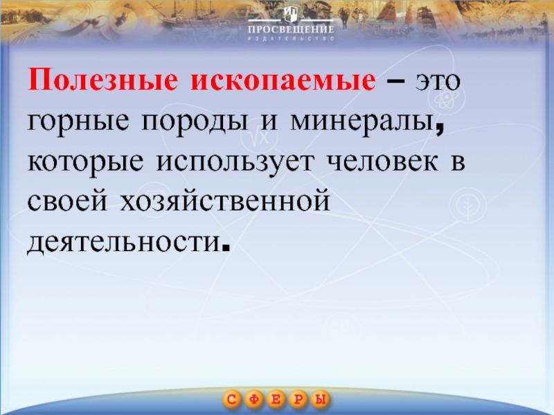 Слайд 6Полезные ископаемые – это горные породы и минералы, которые использует человек в