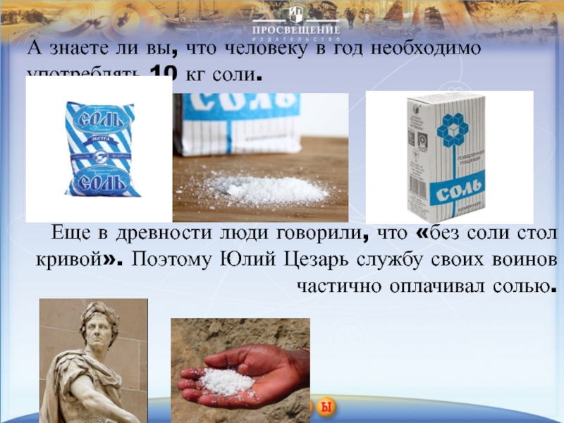 Еще в древности люди говорили, что «без соли стол кривой». Поэтому Юлий Цезарь службу своих воинов частично оплачивал солью.