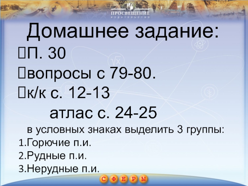 Слайд 9Это торф, бурые и каменные угли, нефть, природные газы, горючие сланцы. Впрочем, термин