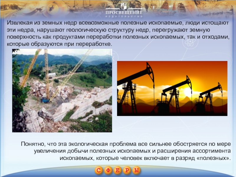 Слайд 14Извлекая из земных недр всевозможные полезные ископаемые, люди истощают эти недра,