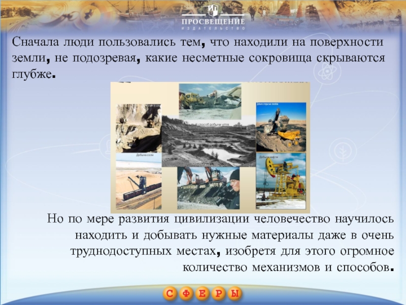 Слайд 7Сначала люди пользовались тем, что находили на поверхности земли, не подозревая,
