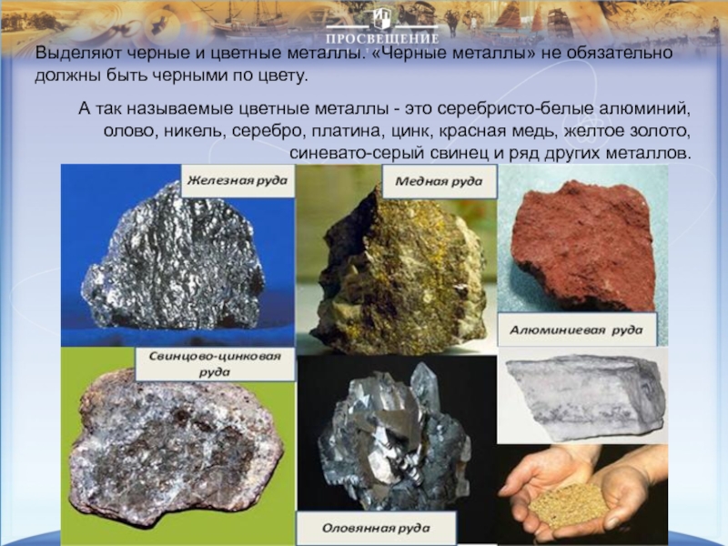 Слайд 11Выделяют черные и цветные металлы. «Черные металлы» не обязательно должны быть