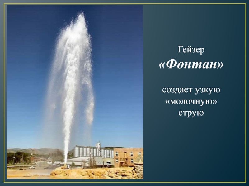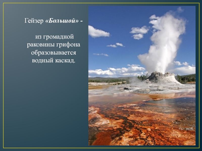 Слайд 6 Самый значительный из гейзеров «Великан», расположенный на левом