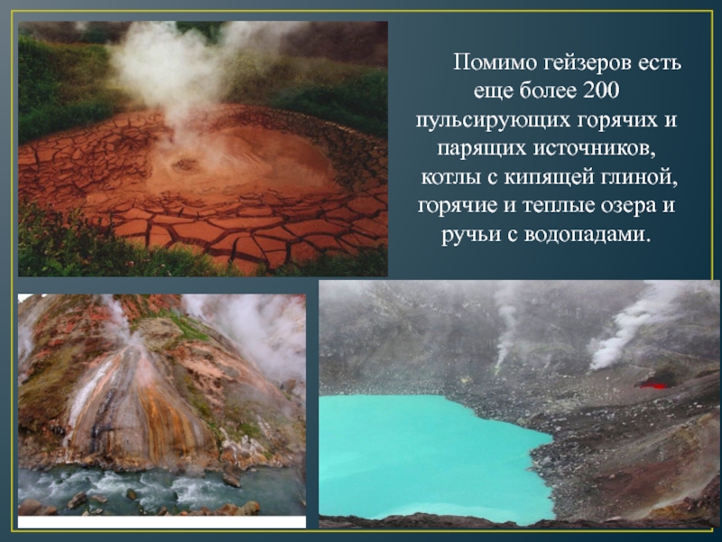 Слайд 11 Помимо гейзеров есть еще более 200 пульсирующих