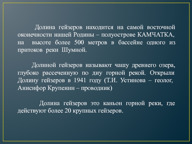 Презентация, доклад на тему Долина гейзеров 6 класс