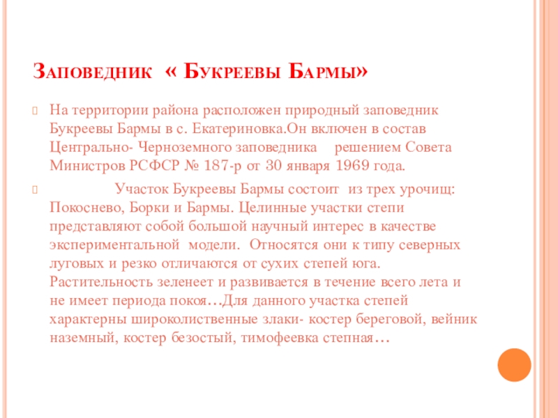Слайд 28Заповедник « Букреевы Бармы»