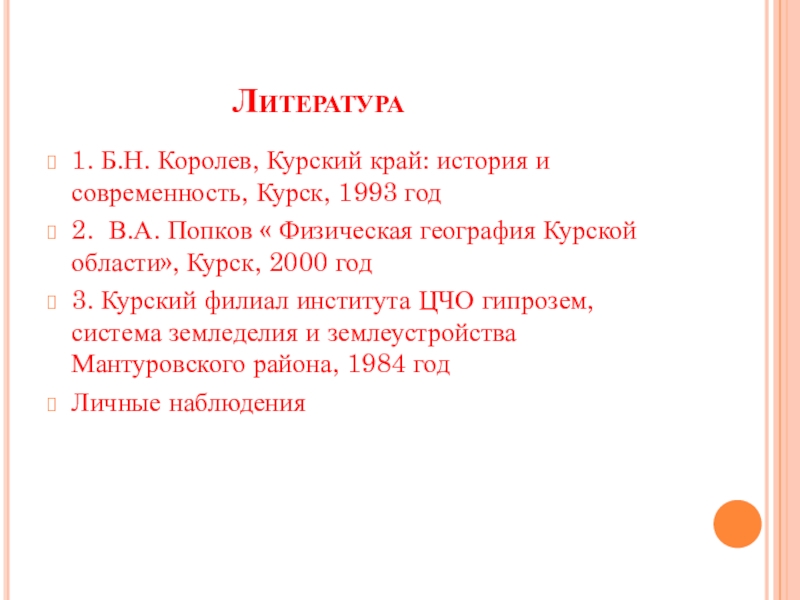 2. В.А. Попков « Физическая география Курской области», Курск, 2000 год