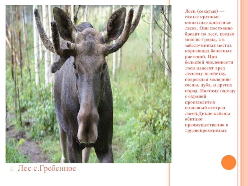 Слайд 35Лоси (сохатые) — самые крупные копытные животные лесов. Они постоянно бродят