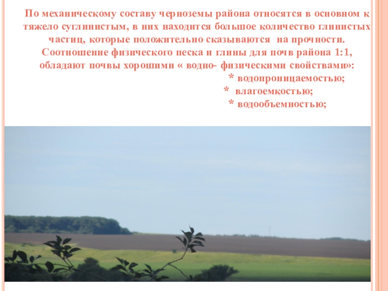 Слайд 24По механическому составу черноземы района относятся в основном к тяжело суглинистым,
