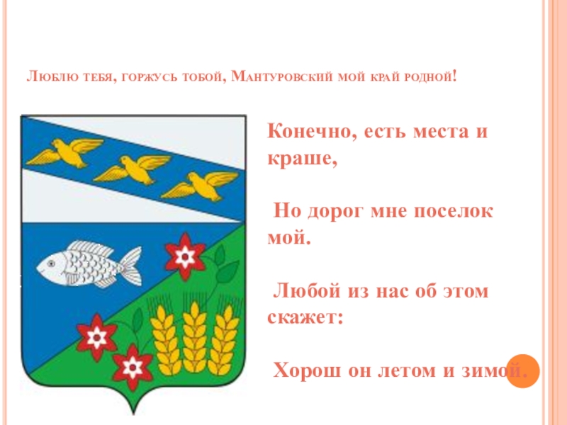 Слайд 2Люблю тебя, горжусь тобой, Мантуровский мой край родной!