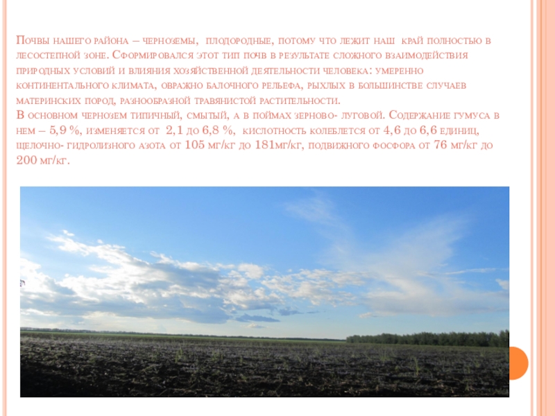 Слайд 23Почвы нашего района – черноземы, плодородные, потому что лежит наш край