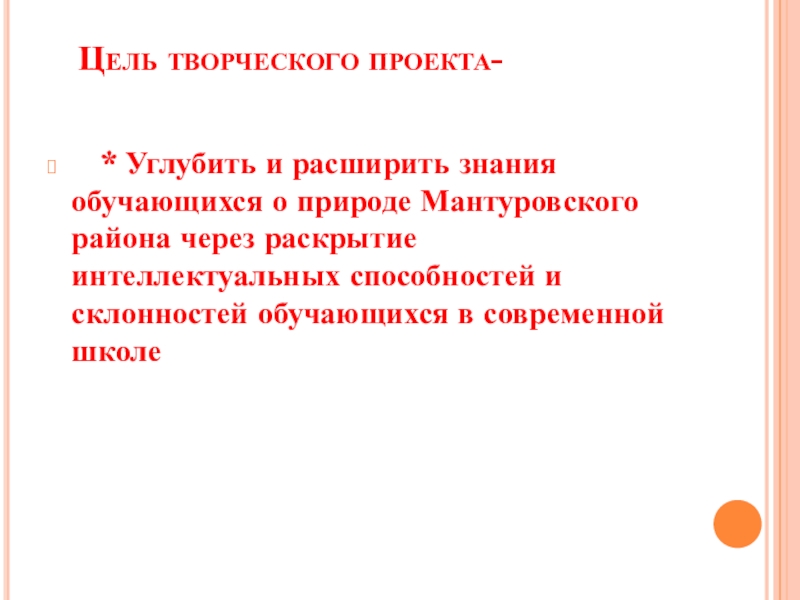обучающихся о природе Мантуровского района через раскрытие интеллектуальных способностей и склонностей обучающихся в современной школе