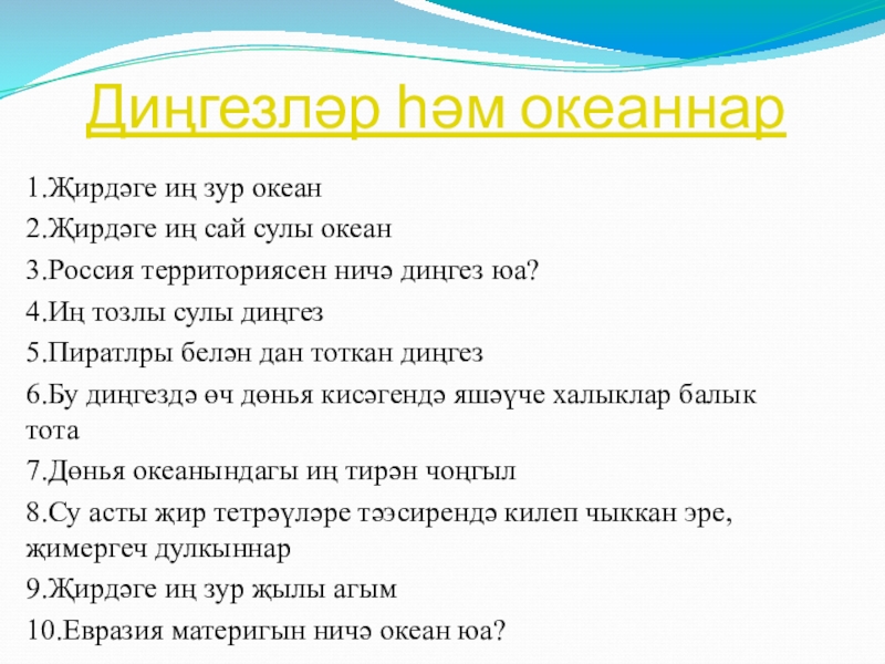 6.Бу диңгездә өч дөнья кисәгендә яшәүче халыклар балык тота