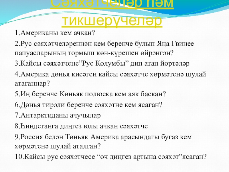 3.Кайсы сәяхәтчене”Рус Колумбы” дип атап йөртәләр