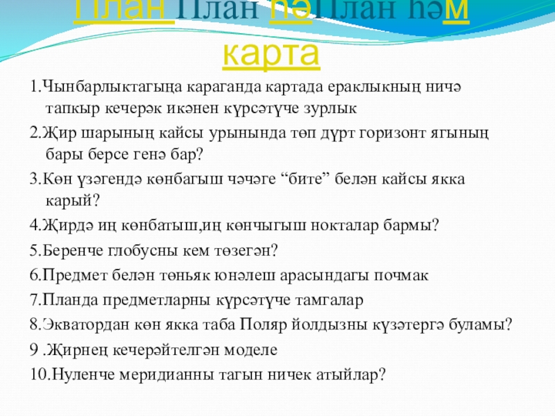 1.Чынбарлыктагыңа караганда картада ераклыкның ничә тапкыр кечерәк