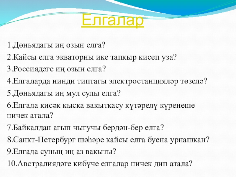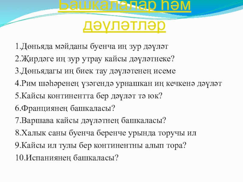 1.Дөньяда мәйданы буенча иң зур дәүләт