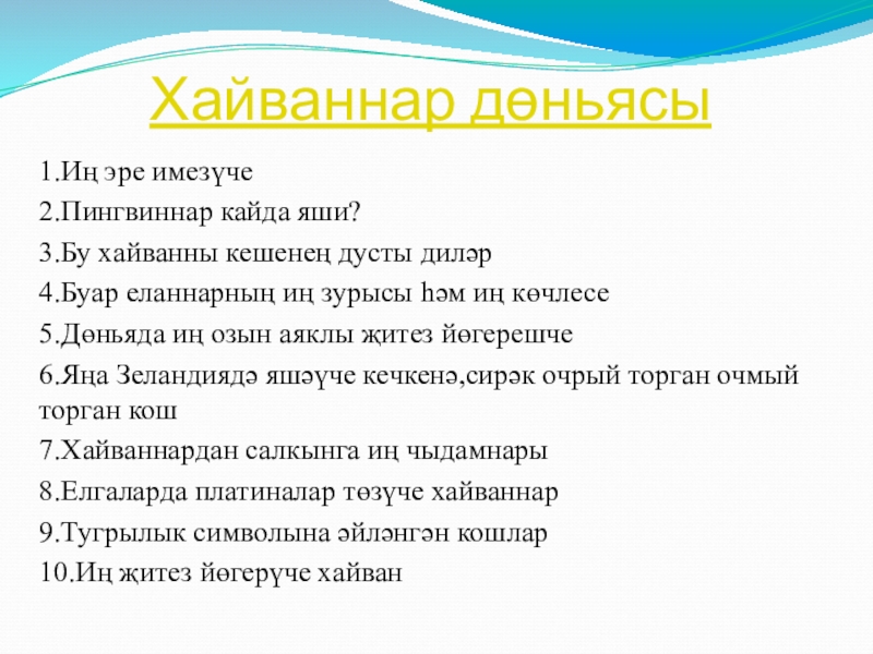 6.Яңа Зеландиядә яшәүче кечкенә,сирәк очрый торган очмый торган кош