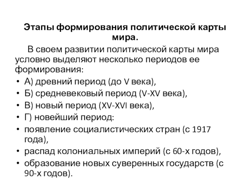 В своем развитии политической карты мира условно