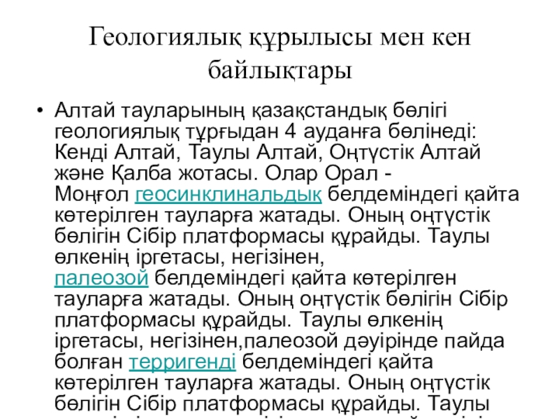 Алтай тауларының қазақстандық бөлігі геологиялық тұрғыдан 4