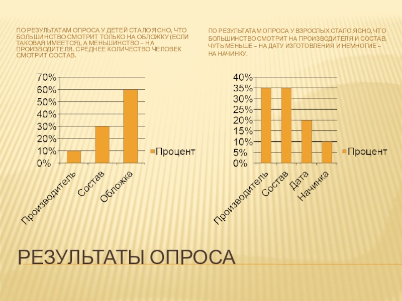 По результатам опроса у взрослых стало ясно, что большинство смотрит на производителя и состав, чуть меньше – на дату изготовления и немногие – на начинку.
