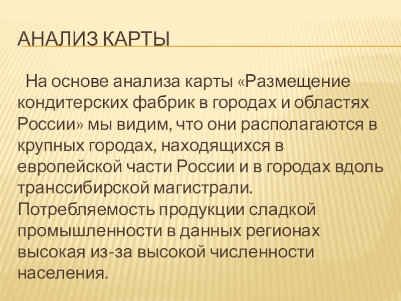 На основе анализа карты «Размещение кондитерских фабрик в городах